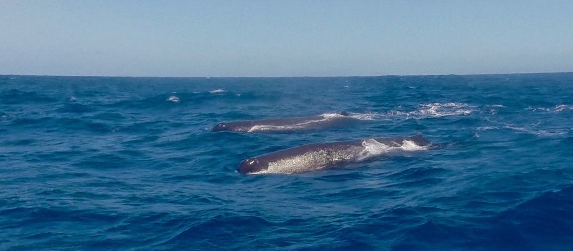 Disappointingly, we haven’t seen so many birds on this leg of the passage, and this must be the first time without a night time visitor resting somewhere on Joy. To make up for the lack of feathered friends however we did have three huge sperm whales pass us by pretty close, one went under the surface and slid past us then shortly after two more came ploughing through at the surface on a mission. It was pretty impressive to watch them, they have such huge blunt heads (the cavity of which, according to my guide book, can accommodate a car!) and their blow hole is through a slit on the left side of their head which we could clearly see. We estimated them to be at least 15m in length.